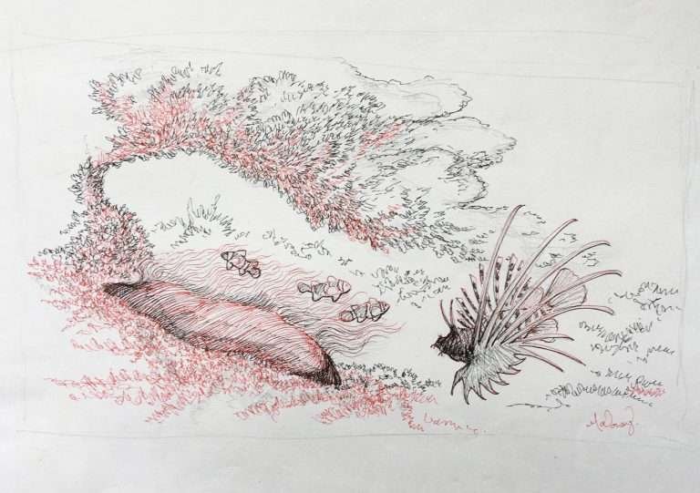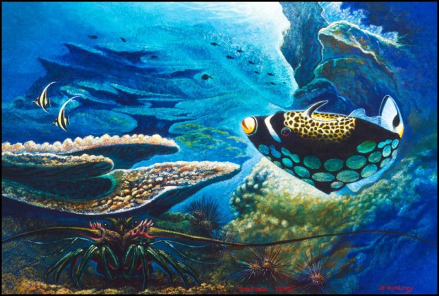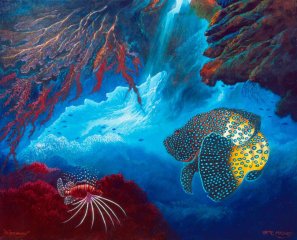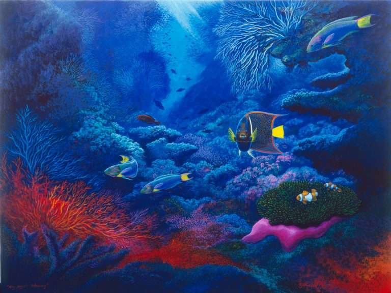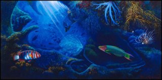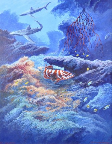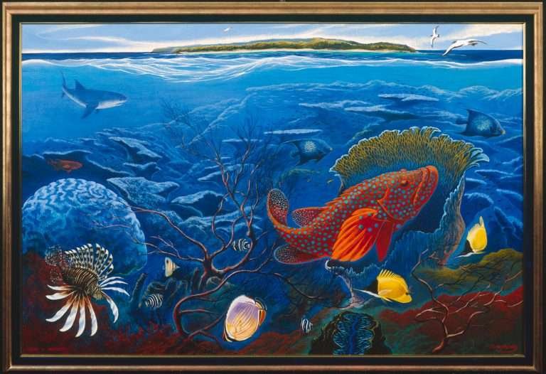 When new owners purchased Manly Marineworld and created the larger Manly Oceanworld, Brian was commissioned to paint a large mural on one of the main areas of the aquarium. This led to other work, including another mural at Heron Island on the Great Barrier Reef.